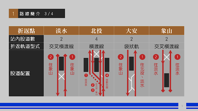 | 捷運淡水信義線各營運端點站軌道配置說明,摘錄自筆者研究所作業簡報。 |