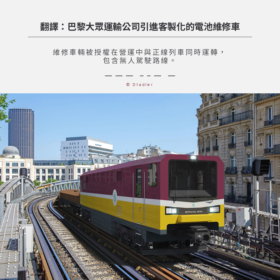 翻譯:巴黎大眾運輸公司引進客製化的電池維修車